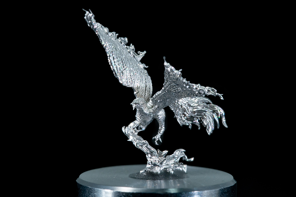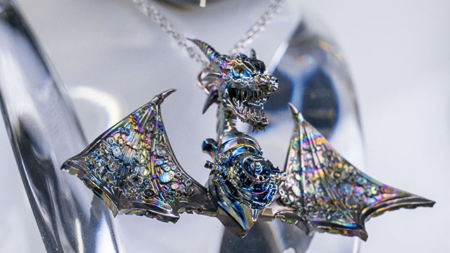 Using advanced micro machining techniques, CASTEM carved intricate mechanical details directly into the material to create a miniature dragon design.