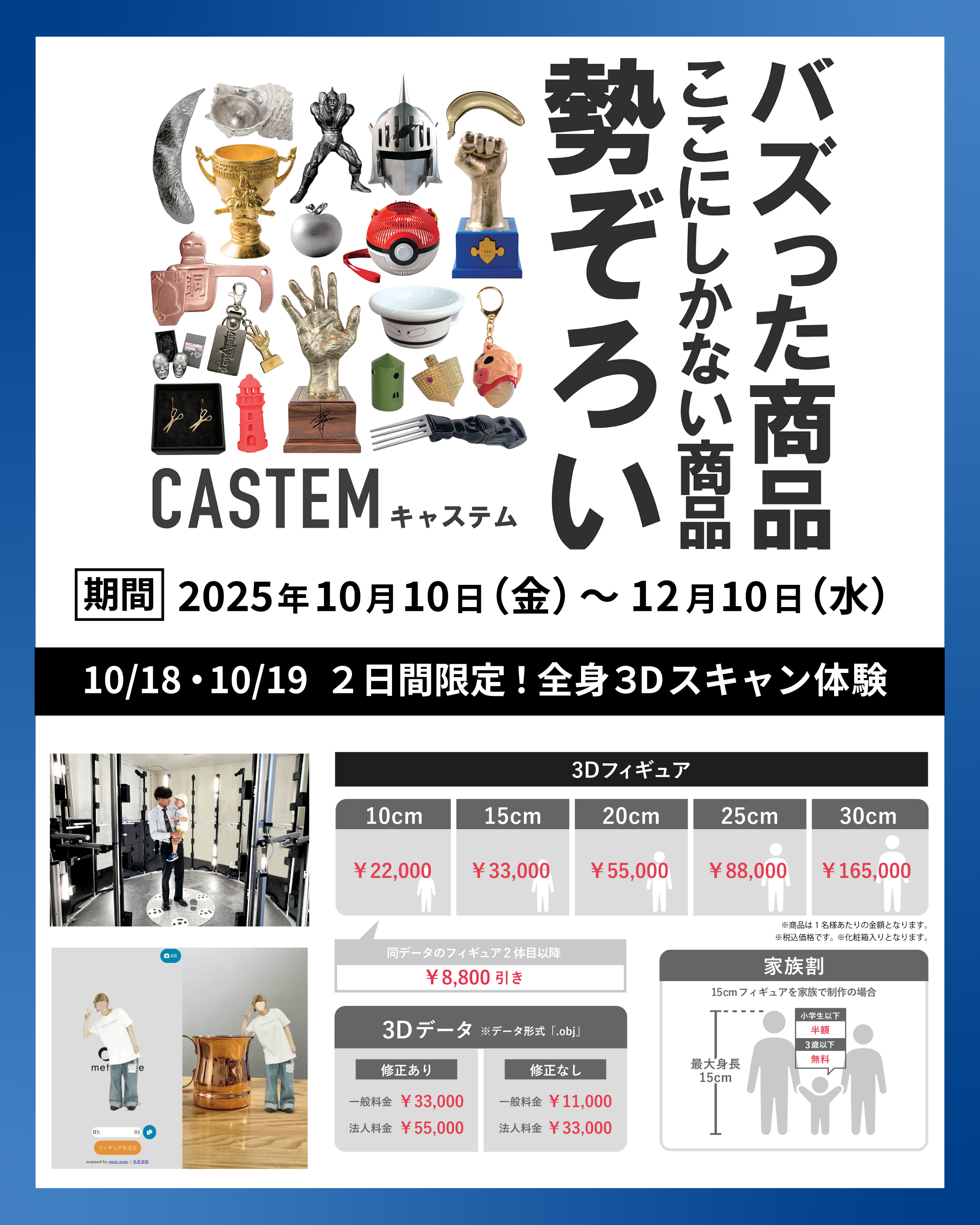 本ショップでは、SNSやメディアで話題となったオリジナルグッズを中心に約200種類・1500点を展示販売するとともに、10月18日(土)・19日(日)に全身3Dスキャン装置を活用した体験イベントを実施いたします。