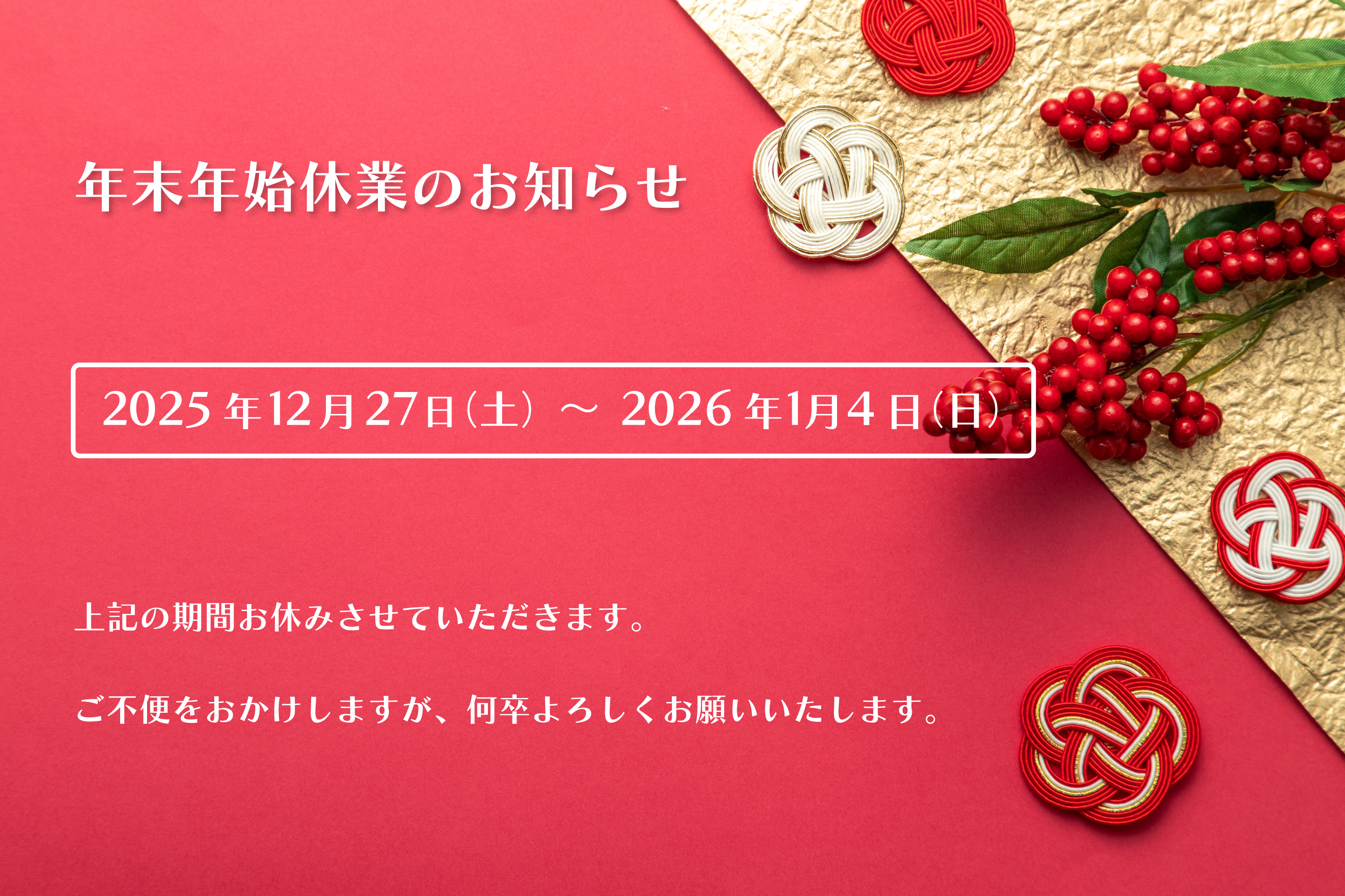 ▶ 休業期間 2025年12月27日(土)~2026年1月4日(日)