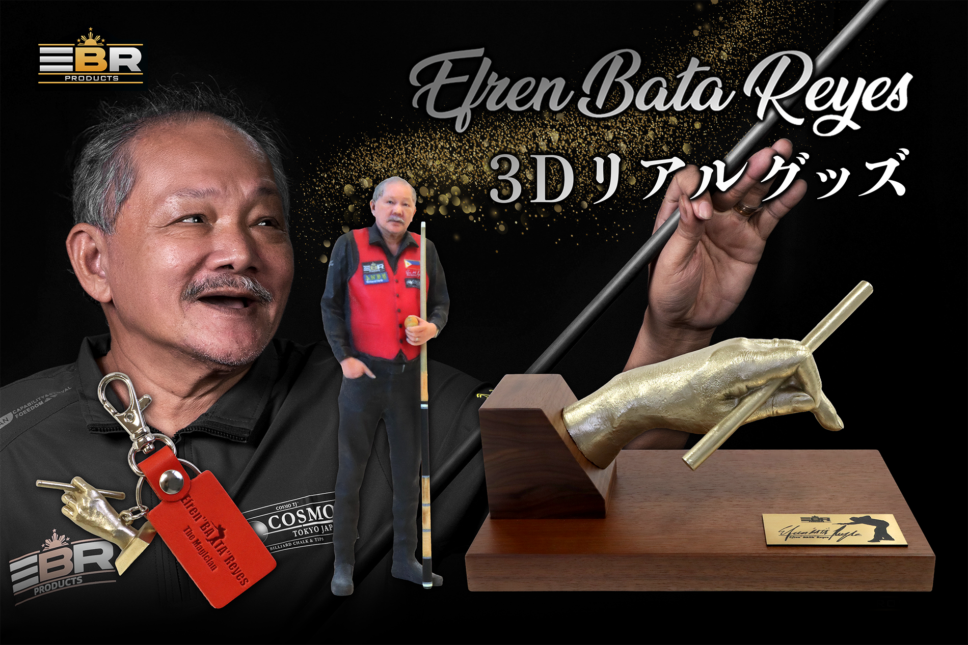 人の体の一部や全身をリアルに商品化するブランド 『History Maker(https://www.history-maker.jp/)』を運営する株式会社キャステムは、“ビリヤードの神様”として世界的に知られるエフレン・レイズ氏の3Dフィギュアおよび、本人から直接型取りした実寸大の手型モデル(1/1スケール)とミニチュア化した手型キーホルダーを、日本国内の代理店であるEBR Productsを通じて販売いたします。