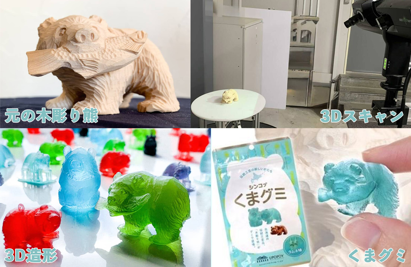 くまグミの開発は、北海道・白老町における木彫りの伝統工芸士の減少と高齢化を耳にしたことがきっかけです。
