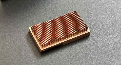純銅製の微細ピン構造を持つヒートシンクで、放熱性能と加工難易度の両立を実現した製品です。高熱伝導材料である純銅を用いながら、複雑かつ微細な構造を実現した点が評価され、国際的な鋳造コンテストにおいて総合優勝を獲得しました。AI分野などへの展開が期待されています。