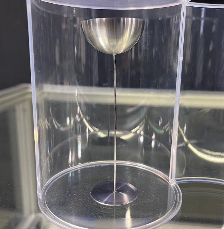 細さと長さの極限に挑戦して生まれた、精密加工のエッグスタンドです。カップ面は片肉0.1mmという非常に薄い仕上げ、スタンド部分は最小径φ1mm・長さ82mmという繊細な形状、さらに底面の厚さもわずか0.5mm。いずれも高い加工精度が求められる仕様となっています。とりわけ、φ1mmという極細部分の加工は大きな課題でした。この難題を克服するため、最適な加工方法の確立に約3か月を費やし、試行錯誤を重ねて完成に至りました。